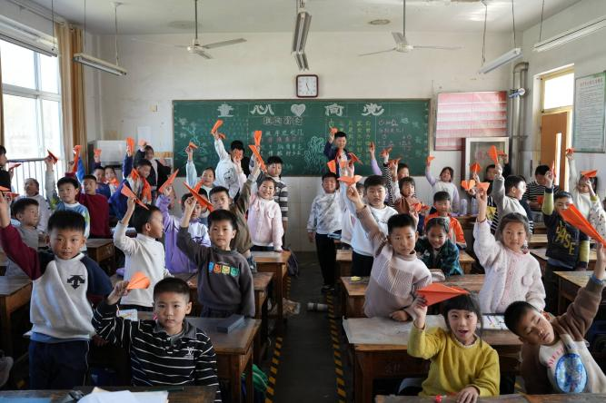 阳光透过窗户,平安产险山东分公司的支教志愿者们站在山东省日照市莒县长岭镇石井花园小学的教室里,将手中的彩纸举过头顶,阳光为这张普通的纸镀上了一层金边。今天,他们要带领孩子们进行一场特别的旅行——用纸飞机,载着梦想启航。