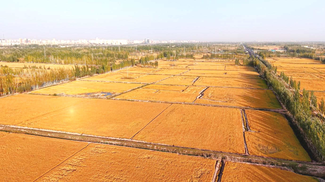 西域戈壁:盐碱滩变身“金色稻田”的逆袭