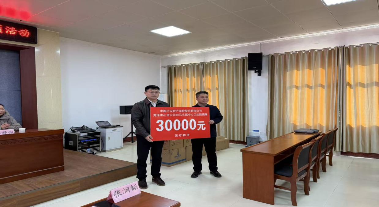在热烈的掌声中,活动迎来医疗物资捐赠环节。弭惠彬代表平安产险向马头镇捐赠总值3万元的医疗物资,包括村民小药箱、村医服务包及村卫生室服务包等;镇中心卫生院院长张润韬代表接收。这批物资将有效补充基层医疗设备资源,为村医开展日常诊疗和健康监测提供坚实支持,让群众在家门口即可享受更便捷、更优质的医疗服务,进一步为乡村振兴贡献积极力量。