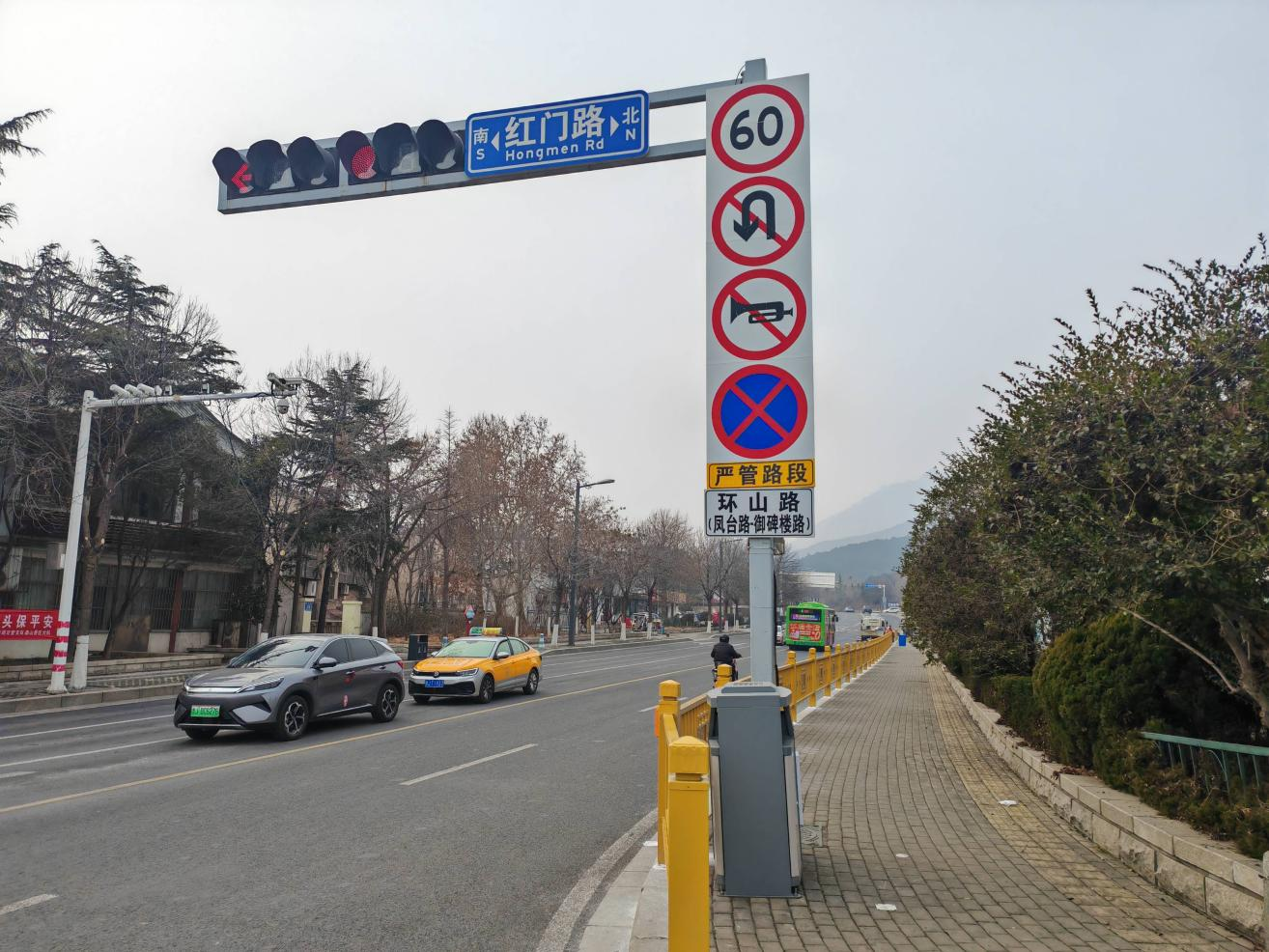 红门路与环山路交叉口作为通往泰山景区的重要通道,常年车流密集,交通承载压力大。部分出租车、网约车随意在路边停车上下客,导致后方车辆拥堵、变道频繁,极易引发剐蹭事故,影响游客出行体验与道路安全。此次增设的94米隔离护栏,通过物理隔离方式规范行车与临时停靠区域,有效引导车辆有序通行,从源头减少因违规停车引发的交通混乱与事故隐患。