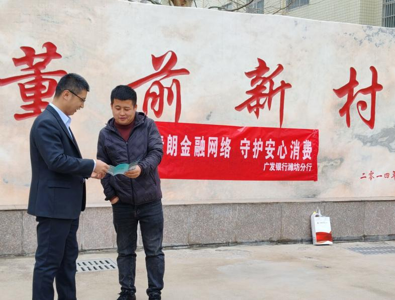 在“3·15国际消费者权益日”来临之际,为深入践行金融工作的政治性、人民性,切实提升社会公众金融风险防范意识与自我保护能力,广发银行潍坊寿光支行组建宣传小分队,走进董前村社区,开展以“金融消保在身边”为主题的专项教育宣传活动,将暖心金融知识与维权服务送到居民家门口。