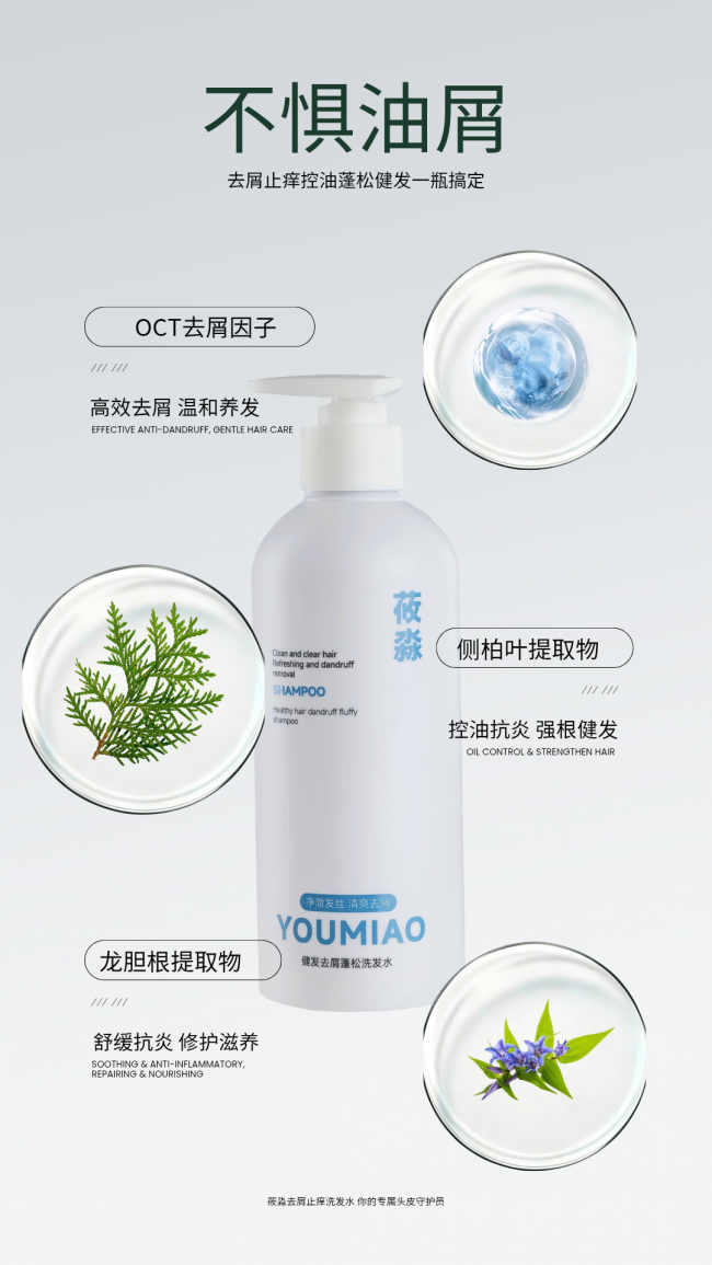核心成分的科学配比,是莜淼洗发水功效扎实的关键所在。莜淼洗发水以高活性OCT去屑因子为核心去屑成分,该成分能精准靶向抑制马拉色菌的过度增殖——这是头屑产生的核心致病菌,从根源切断头屑生成链条,同时快速舒缓头皮瘙痒,实现长效去屑止痒,区别于市面上多数“治标不治本”的产品,真正做到从根源解决头屑反复问题。