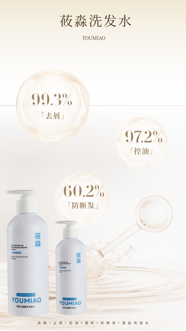 莜淼洗发水以专利科技赋能头皮养护,破解多重头皮难题,头屑、头油、扁塌、头发易断全拿捏