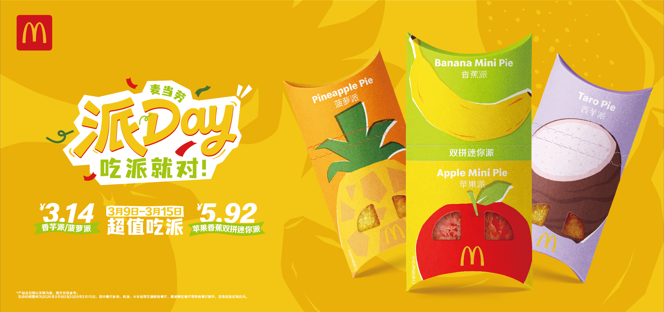 麦当劳开启2026年派Day欢庆,苹果香蕉双拼派限时上新 人气口味创新形式返场回应粉丝呼声,超值吃派3.14元起
